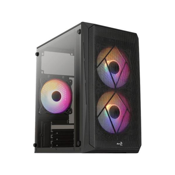 - Diseño Compacto y Elegante: El AeroCool CS-107 redefine lo que significa ser un case mini tower. Su diseño negro, complementado con un panel de vidrio templado, no solo agrega un toque de sofisticación a tu espacio de juego, sino que también facilita la visualización de tus componentes internos.