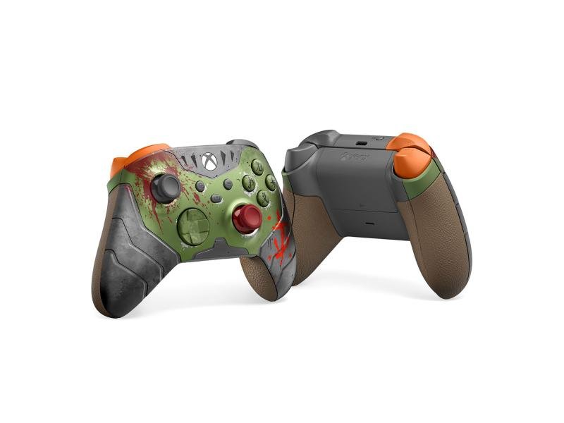Diseño exclusivo Doom: verde mate con picos plateados, gatillos naranjas vivos y botones rúnicos. El acabado texturizado antideslizante brinda agarre seguro, ideal en partidas intensas .