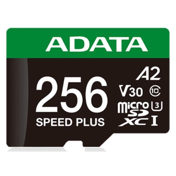Memoria Micro SDXC 256GB ADATA Speed Plus con velocidad de 180/160 MB/s. Ideal para expandir almacenamiento en Nintendo Switch, cámaras y smartphones.