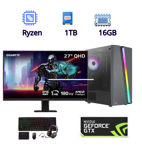 Complementa esta poderosa PC con el monitor Gigabyte G27Q de 27 pulgadas, resolución 2560×1440 (QHD) y frecuencia de actualización de 180 Hz, que ofrece una experiencia visual increíblemente fluida. Además, el kit gaming Eagle Warrior Rhino incluye teclado mecánico, mouse, auriculares y mousepad con iluminación RGB para completar tu setup.