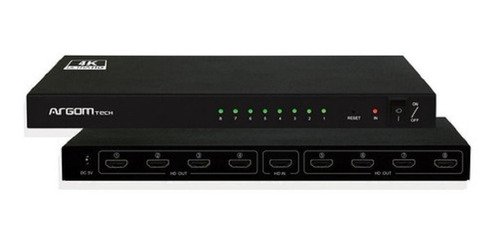 - Entradas y Salidas: 1 puerto HDMI de entrada y 8 puertos HDMI de salida, facilitando la conexión de múltiples dispositivos.