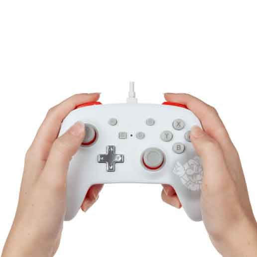 Juega tus juegos favoritos de Nintendo Switch * con estilo con este controlador con cable mejorado PowerA con licencia oficial en blanco con Mario, conector de audio de 3,5 mm y dos botones de juego avanzados asignables.